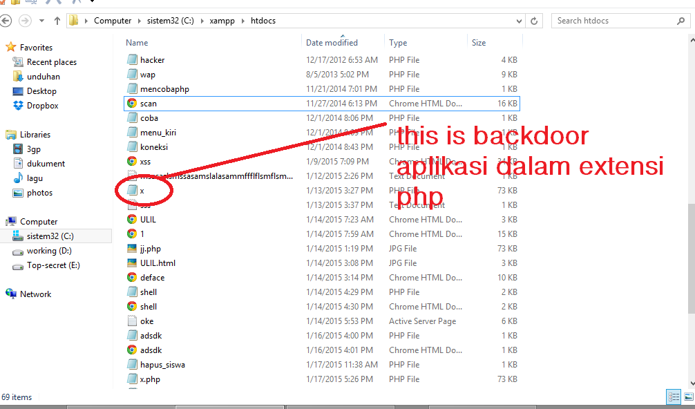 bicara soal backdoor anda bisa baca di pengertian backdoor ,pada artikel ini akan saya jelaskan tentang aplikasi yang digunakan untuk menscan atau mencari backdoor didalam file komputer kita ,saya akan mencobanya dengan menempatkan satu aplikasi backdoor di C:\xampp\htdocs , saya mengunakan localhost untuk mengakses nya